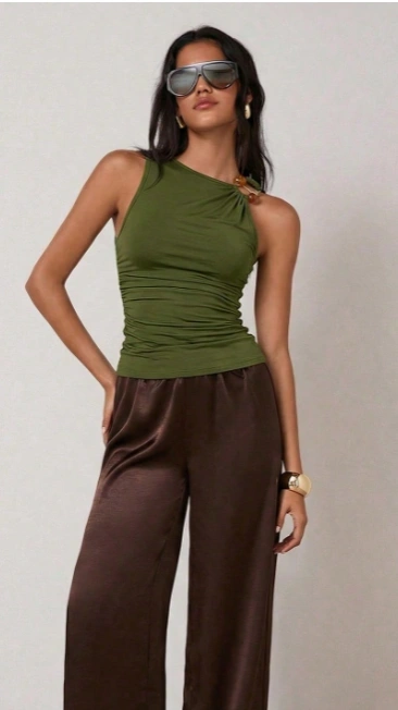 Solid Color Metal Decor Fitted Elegant Fashion Camisole