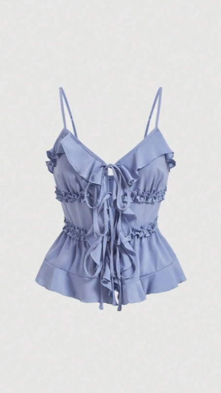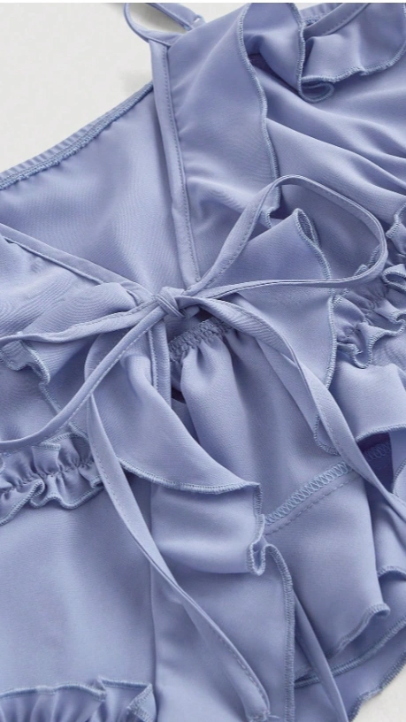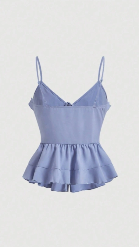 Summer Blue Bodycon Ruffle Cup Wireless Bralette Top