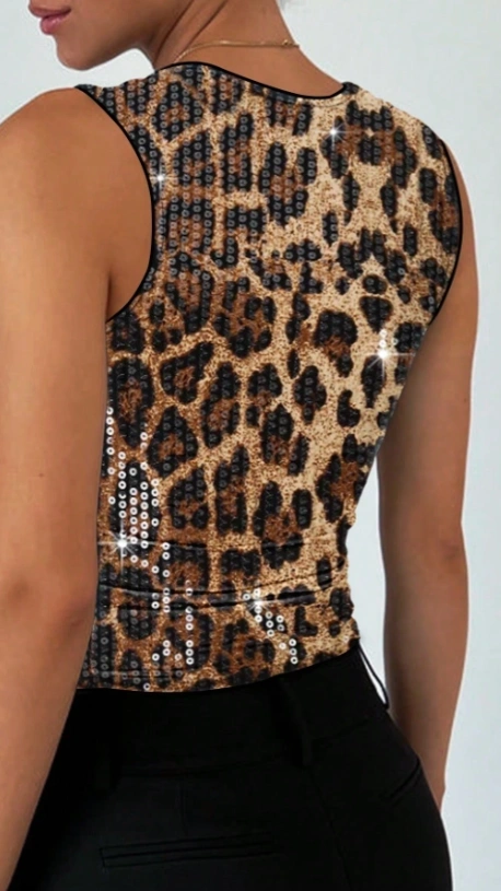 Summer Sexy Leopard Print Sequin Top