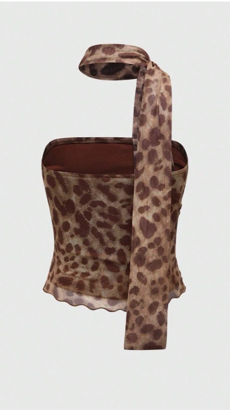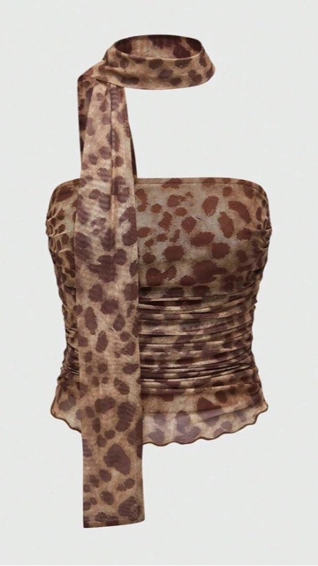 Summer Y2K Gyaru Leopard Print Ruched Top