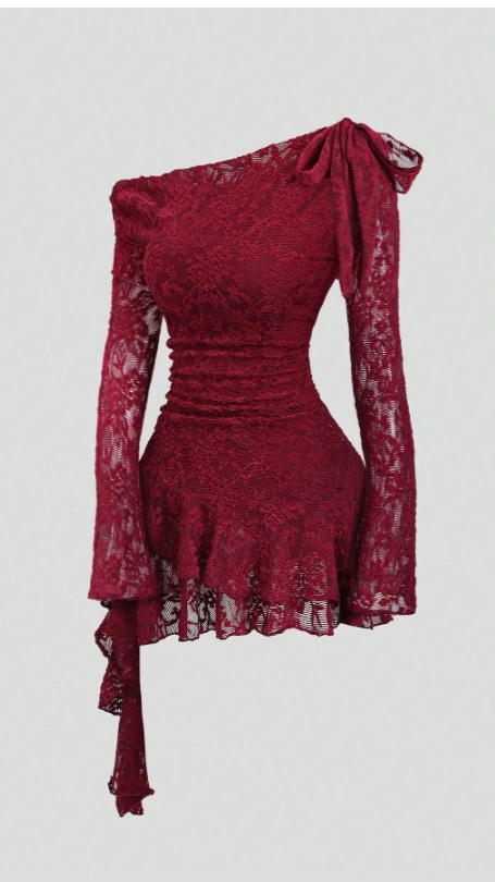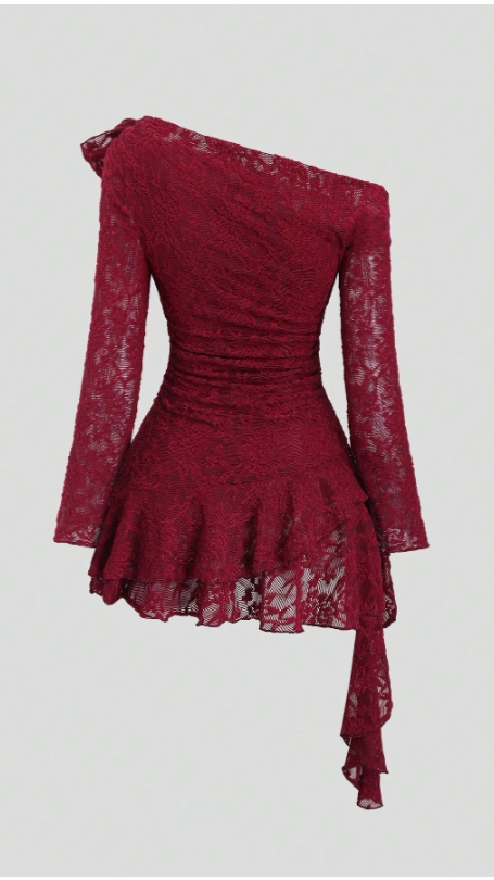Sweetra Y2K Sexy Lace Asymmetric Shoulder Asymmetrical Hem Dress
