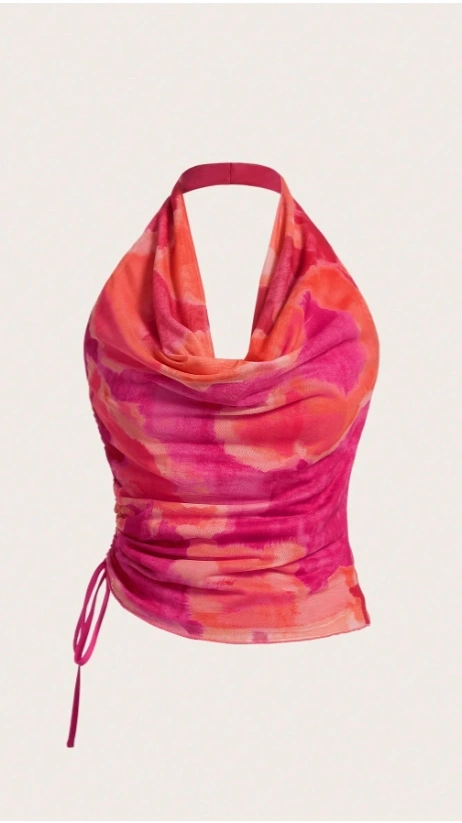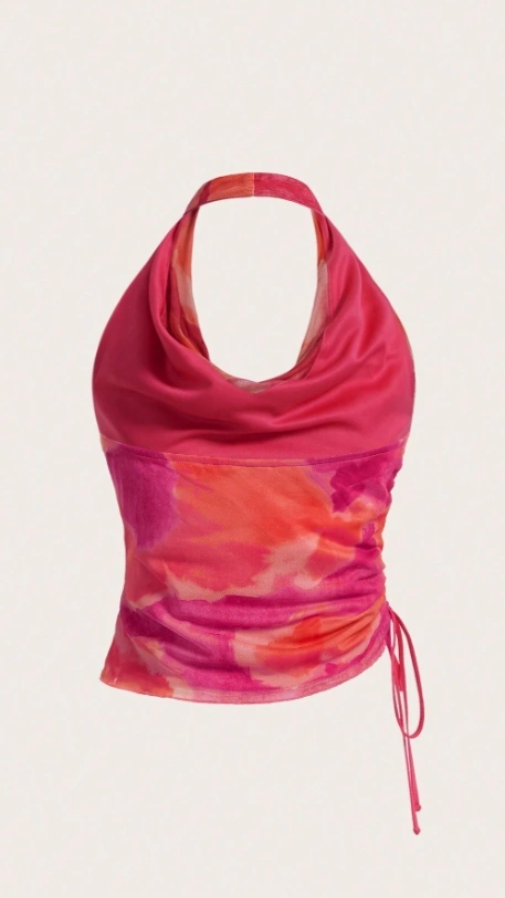 Tie Dye Draped Front Drawstring Side Halter Top