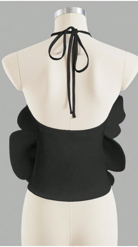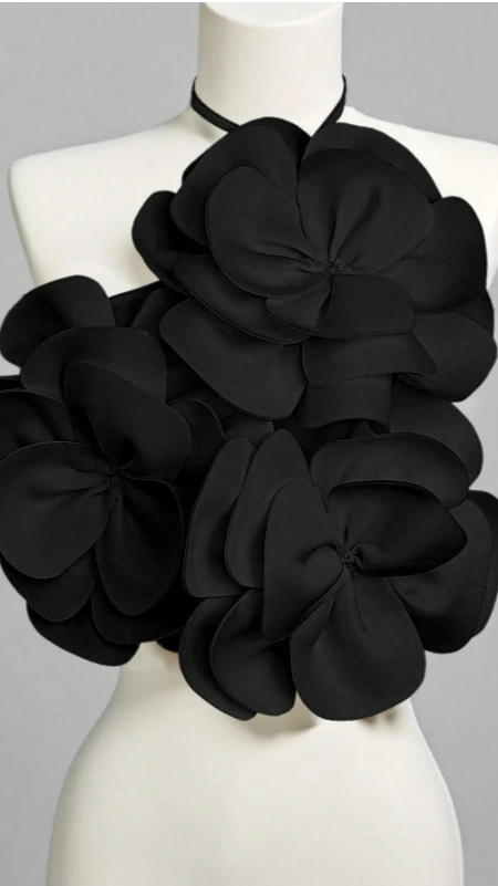 Tie Strap Sleeveless Ribbed Knit Crop Top With Floral Decor