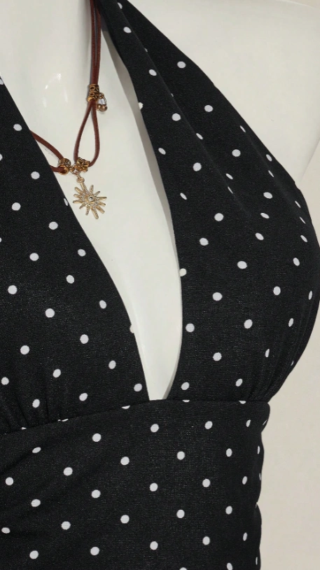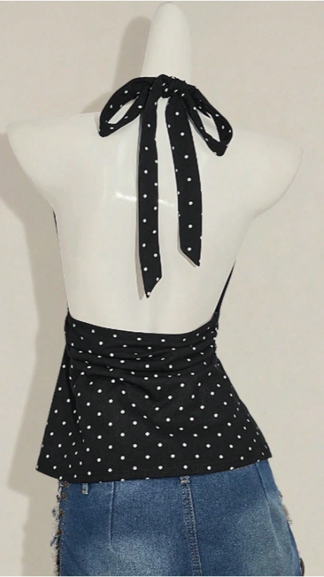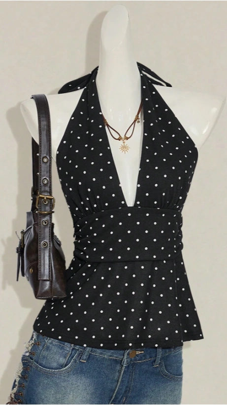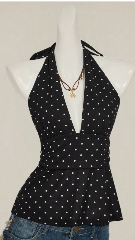 V-Neck Polka Dot Top Wrap Back Blouse