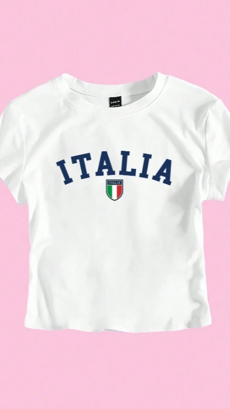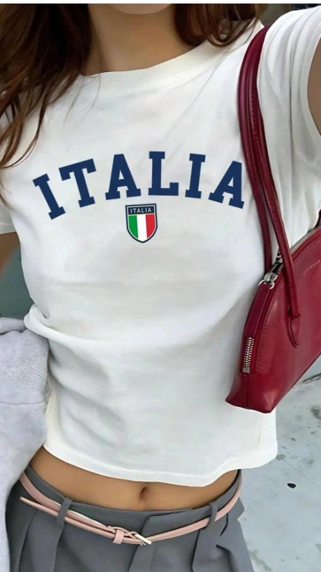 Y2K Italy ITALIA Flag Print Cropped T-Shirt
